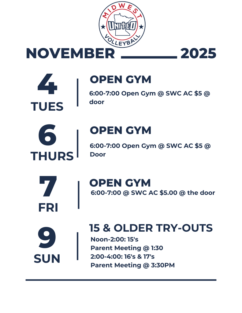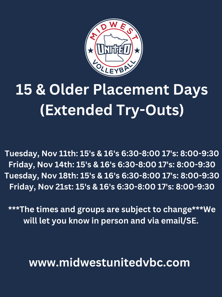 Midwest United VBC will use the technique both the Men’s and Women’s USA Olympic Teams use. That means everyone will be on the same page. When your athlete moves from 15’s to 16’s she will still be receiving similar feedback which allows them to improve at a higher rate and will be consistently getting better every single day.